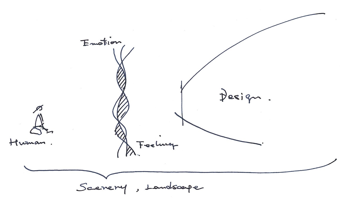 デザイン制作において、俯瞰とディテールの考察を繰り返す。その繰り返しによりデザインメソッドがクリアになる。ユナイテッドデザインでは環境と風景の関係、人と情緒が織りなす風情を重要視する。軸や文脈からデザインが生まれ、いずれ風景や情緒や記憶の断片となり、時を経てなお美しく育まれるデザインの制作を目指す。